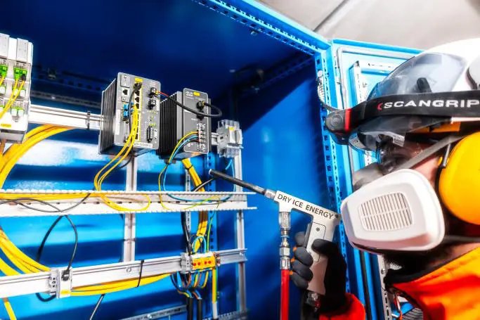 In veel productieomgevingen hopen stof, meel, olie of vezels zich op in kasten en rond drives. Nat reinigen is daar geen optie. Daarom bieden we droogijs-straaltechniek aan als veilige, residuvrije methode. We combineren dit met onze kastonderhoudstechnieken zoals antistatische stofzuigen, uitblazen met droge perslucht en – waar nodig – thermografische controle. Zo krijg je een schone kast zonder downtime door droogtijd, en verleng je de levensduur van je componenten. Perfect te combineren met je periodiek drive-onderhoud.